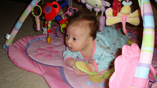 Megan is almost 3 months old. Time has just flown by. She becomes more of a little person with a little personality everyday. I just love watching her grow. These are just some cute pictures of her playing. Her Daddy is out of town and requested another blog posting so he could see his little girl. I hope this will do.