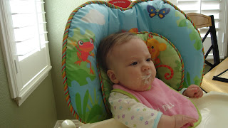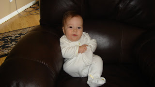 Megan was 6 months old on May 4th. Wow time has gone by so fast. She is a healthy little girl now weighing 15 pounds. She is sitting up so well, but lucky for us, she isn't on the move yet. Yes, there are lots of pictures, but we just couldn't decide which ones were the cutest of her. We also got her 6 months pictures taken by the photographer, so we will be posting those when we get them.
