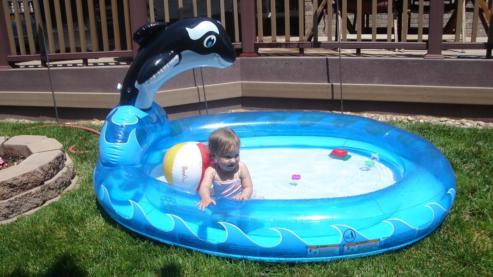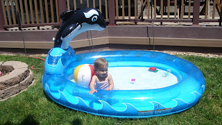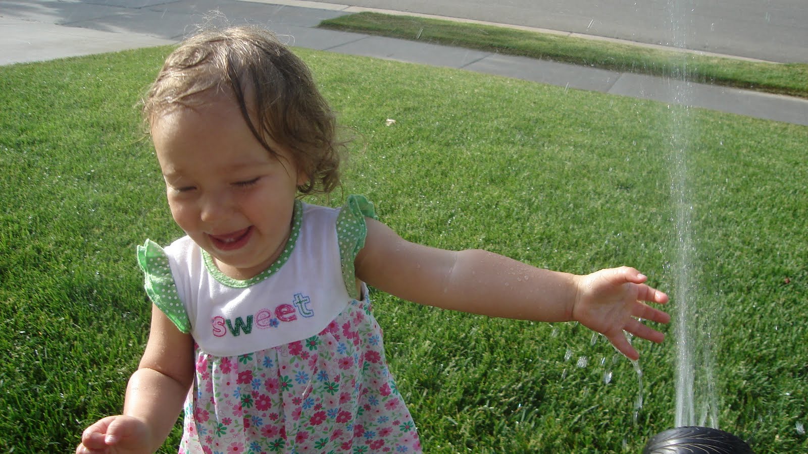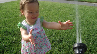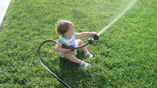 Megan loves playing in the water and going swimming. Even if the water is cold, she still wants to get wet. Here are some recent pictures of her playing with the hose in the front yard and her playing in her little swimming pool.
