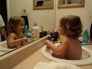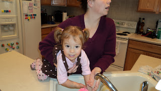 We had a lovely Christmas at home this year. It was a lot of fun watching Megan get excited about Santa and her presents. On Christmas Eve we went to church with my parents. She loved watching baby Jesus in the Chritsmas story and kept asking for him even after the story was finished. Then on Christmas morning she woke up and whispered "Santa" with such excitement. It was adorable. From Santa she got a big train table and train set.